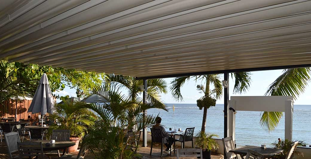 Si votre café ou restaurant est situé face à l’océan Indien et qu’il reçoit le soleil de face, les stores bannes ou à double pente ne formant qu’une toiture seront peu efficaces.